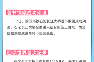 • 圖解|創下四個世界第一!渝萬高鐵石沱長江大橋首節鋼梁成功架設